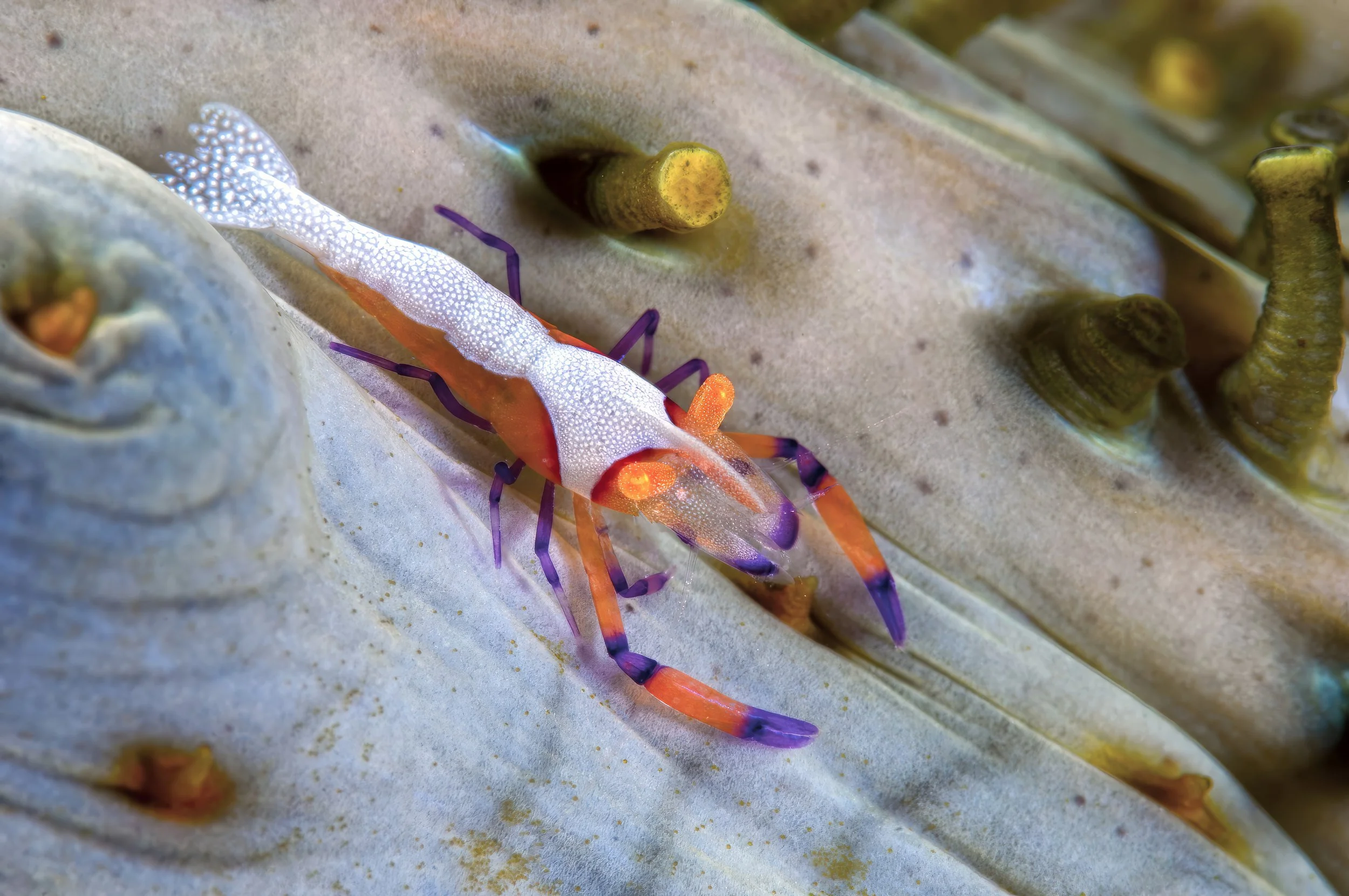 Imperial Shrimp: A Delicate Partnership Unveiled on the Surface of a Sea Cucumber - Seychelles